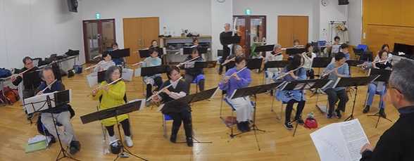 - 新年早々、見学者もひとりあって総勢25名のフルートオーケストラとなり